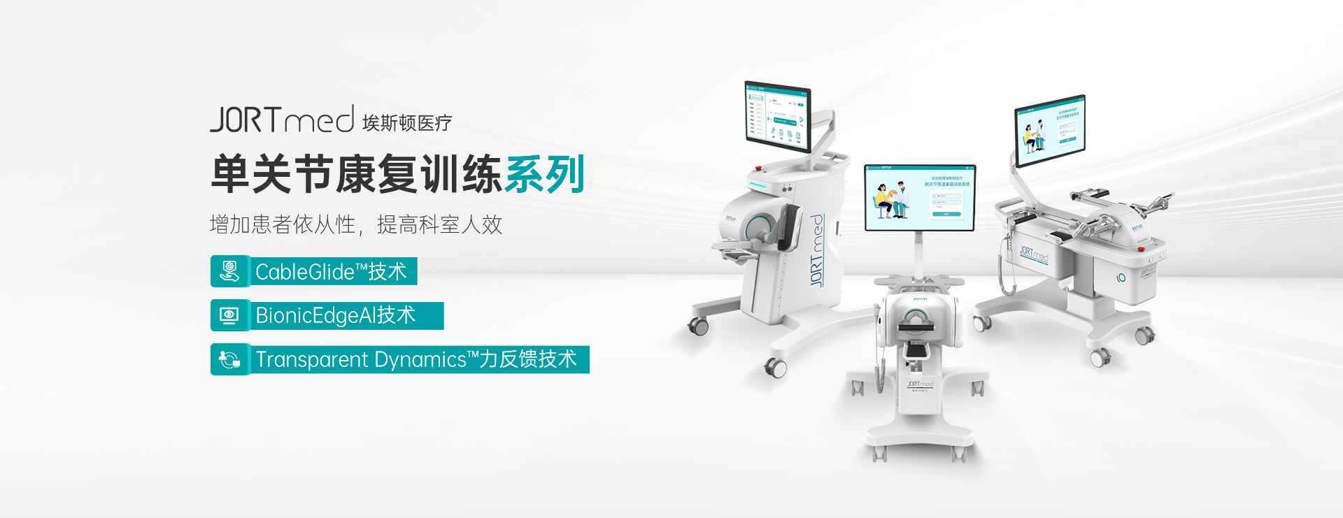 单关节康复训练系列产品使用绳驱技术,结合力反馈算法使患者在柔顺、安全、精准的交互中进行评估和训练。该系列具有多种训练模式,覆盖0-5级肌力患者,将枯燥的大剂量重复性训练转变成针对性情景互动游戏任务,增加患者依从性,提高科室人效。